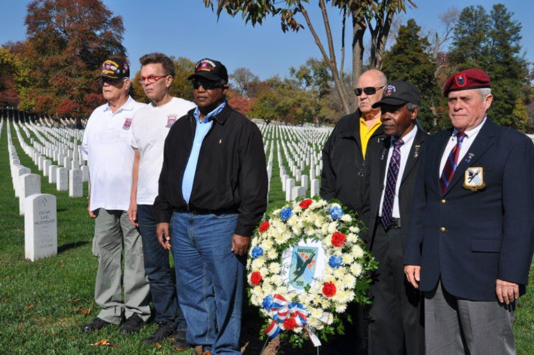 James Drainer, Walter Rauscher, Peter Kendrick, Homer Pane, James Kirser & Ed Herlihy with the 505 P.I.R. Memorial Wreath